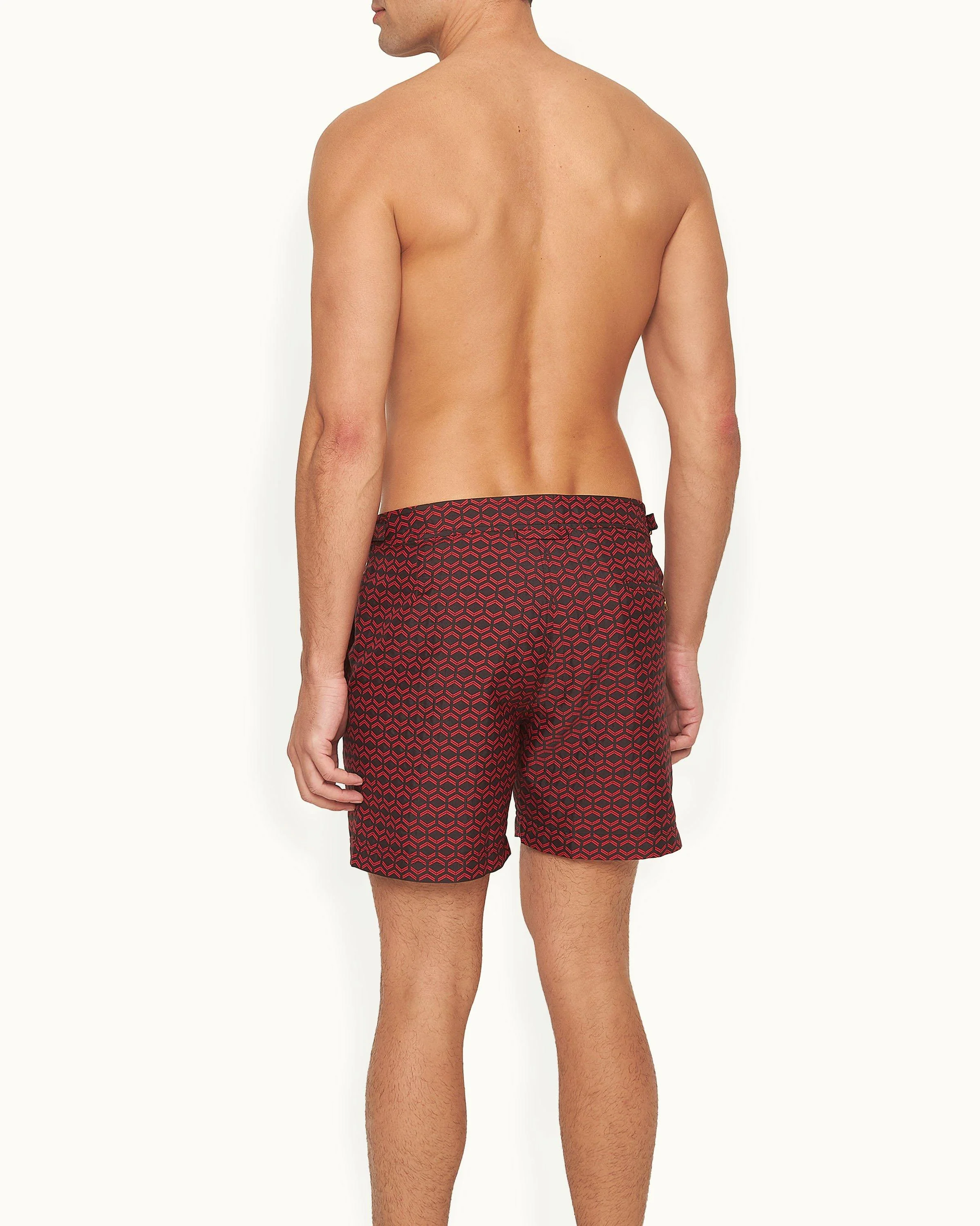 This season, Automobili Lamborghini goes off the road and onto the beach with our exciting collaboration. These tailored Bulldog swim shorts feature a striking hexagonal print which takes inspiration from the stylistic element that has characterised Lamborghini design since the very beginning. The signature Summer Red and Black colour palette is one of our favourite combinations. Plus, enjoy the perfect fit whenever the beach calls, thanks to our elegant gold-effect, dual-branded side fasteners.