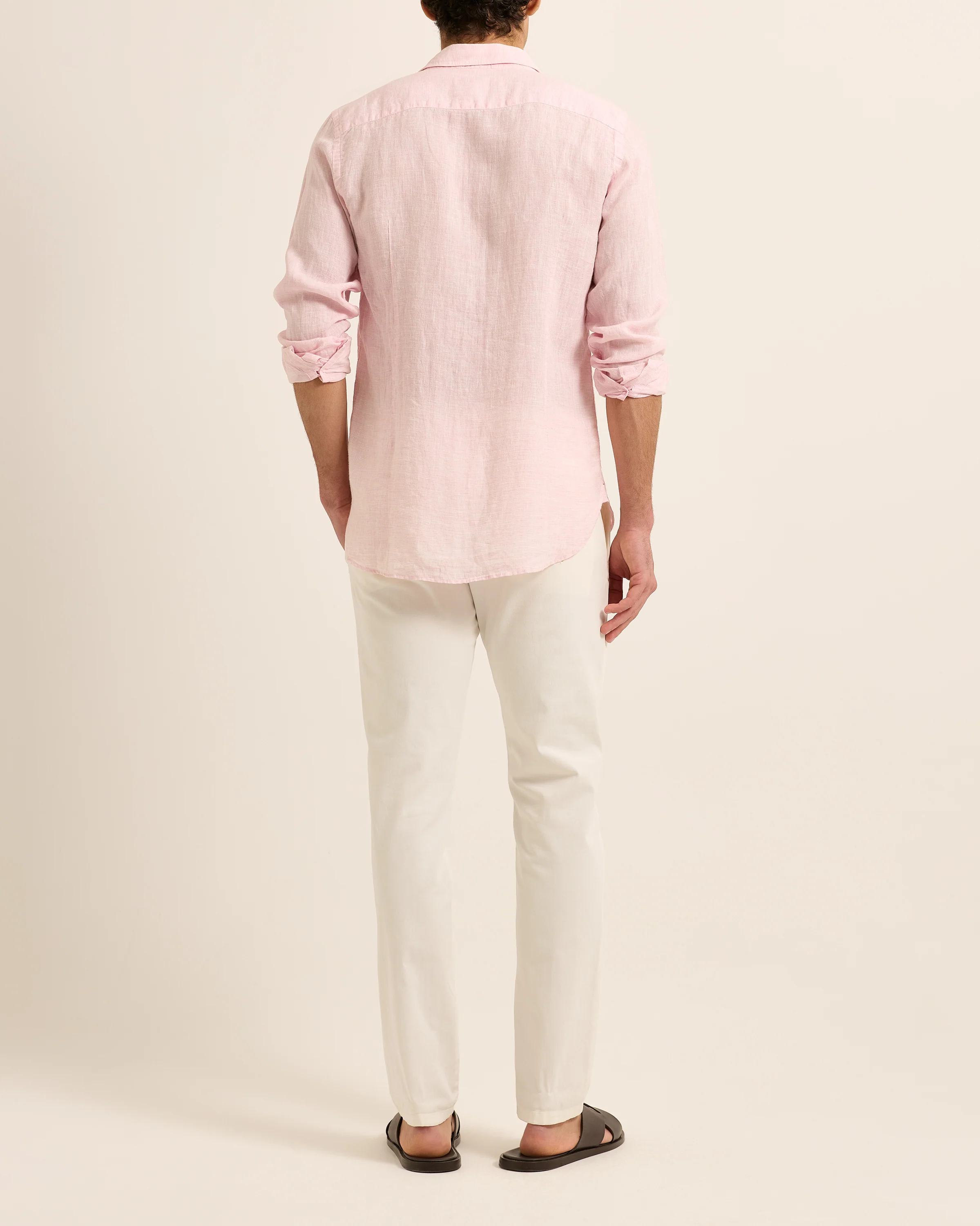 This Giles linen long-sleeved shirt in pale pink is the ultimate holiday style. Styled with imitation Mother of Pearl buttons and a classic collar, wear with chinos for evening or unbuttoned with the sleeves rolled up for day.