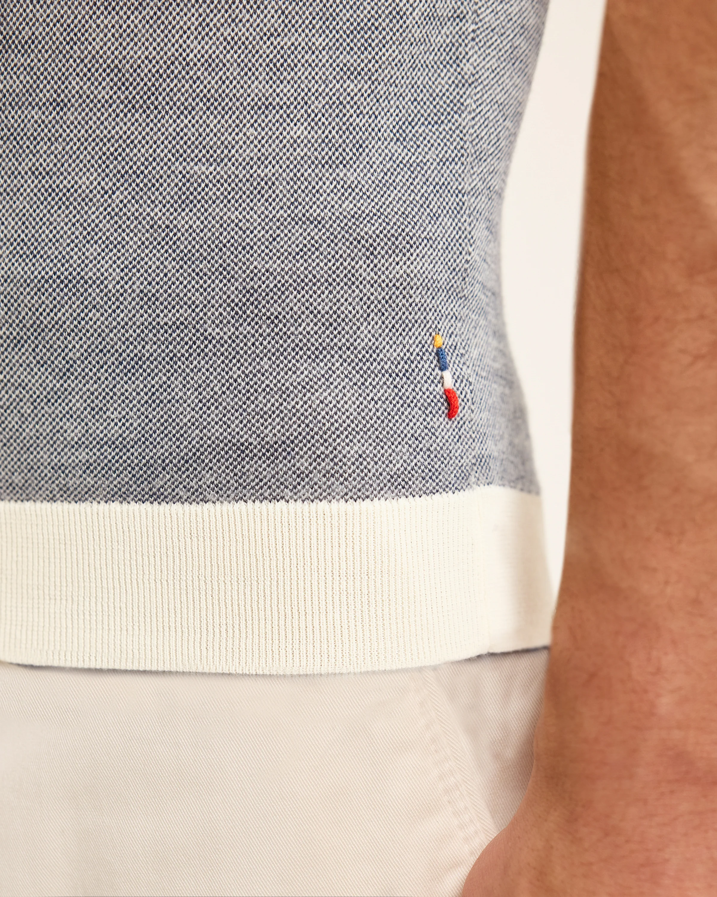 Our Horton polo shirt is all about bold lines and luxury textures. The cotton and merino Italian yarn twist together to create a soft and textured feel, while the white ribbed detailing accentuates the charcoal base. And with our trusted tailored fit and fully fashioned seams, you can enjoy a comfortable natural fit.