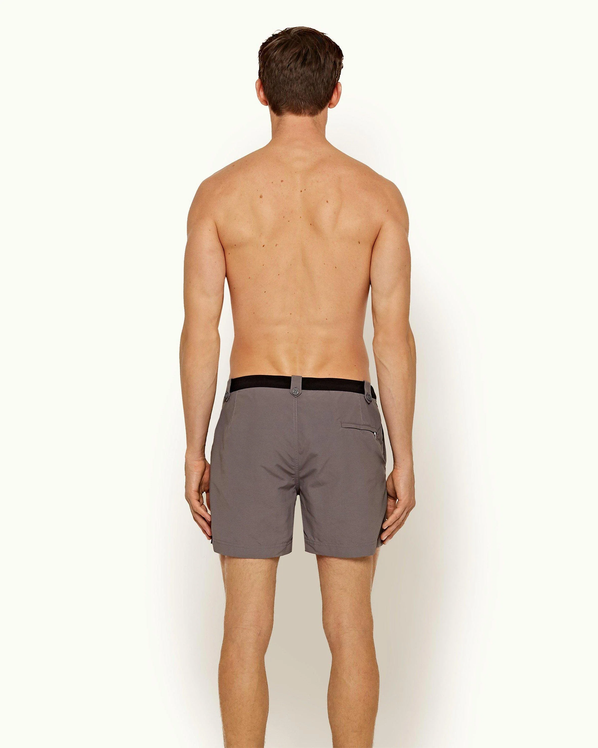 In Fossil Black with a contrast waistband, these Setter swim shorts are inspired by Bond's outfit in Thunderball (1965) when he first encounters Domino while diving in the Bahamas. As one of our original four at launch, the Setter is still our signature 'shorter' style.